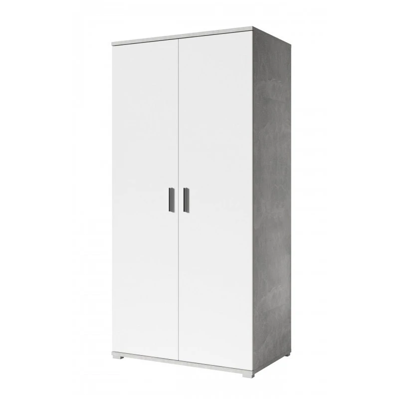 Armoire 2 portes de la collection Soma. Cette armoire blanche et grise dispose d’un espace penderie ainsi qu’un espace rangement de 4 étagères. Sobre et pratique, cette armoire s’intégrera dans n’importe quel chambre enfant.