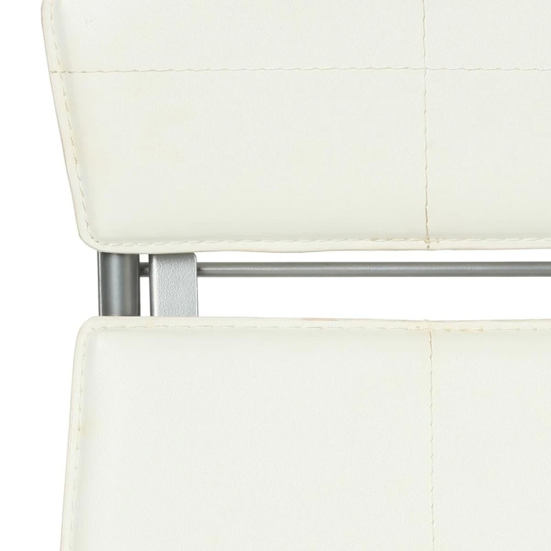 Chaise design et pratique car elle se plie entre 2 utilisations. Structure en acier. Assise en panneaux de fibres de bois recouvert de tissu synthétique pvc, solide et facile d’entretien