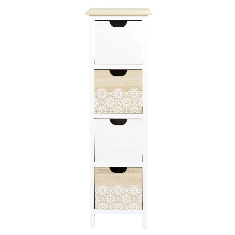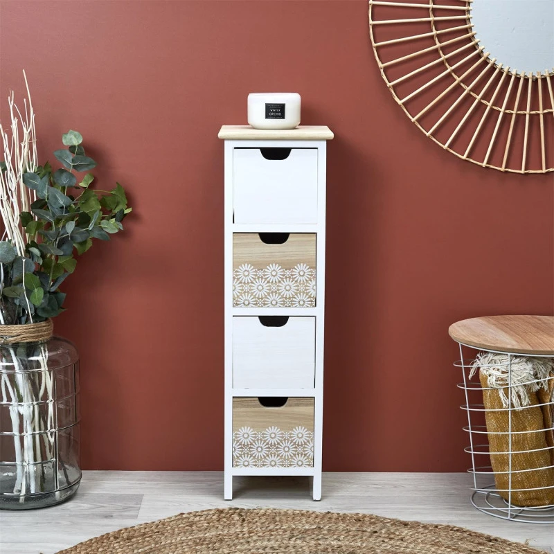 Bénéficiez de rangement supplémentaire avec le chiffonnier 4 tiroirs Chic coloris naturel et blanc.