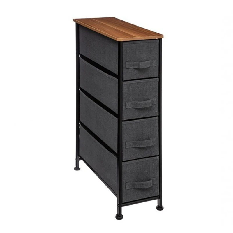 Chiffonnier composé de 4 tiroirs. Sa forme tout en longueur permet de le glisser dans un petit espace ou dans un dressing, très pratique ! les tiroirs sont équipés de poignées souples. A monter soi-même.