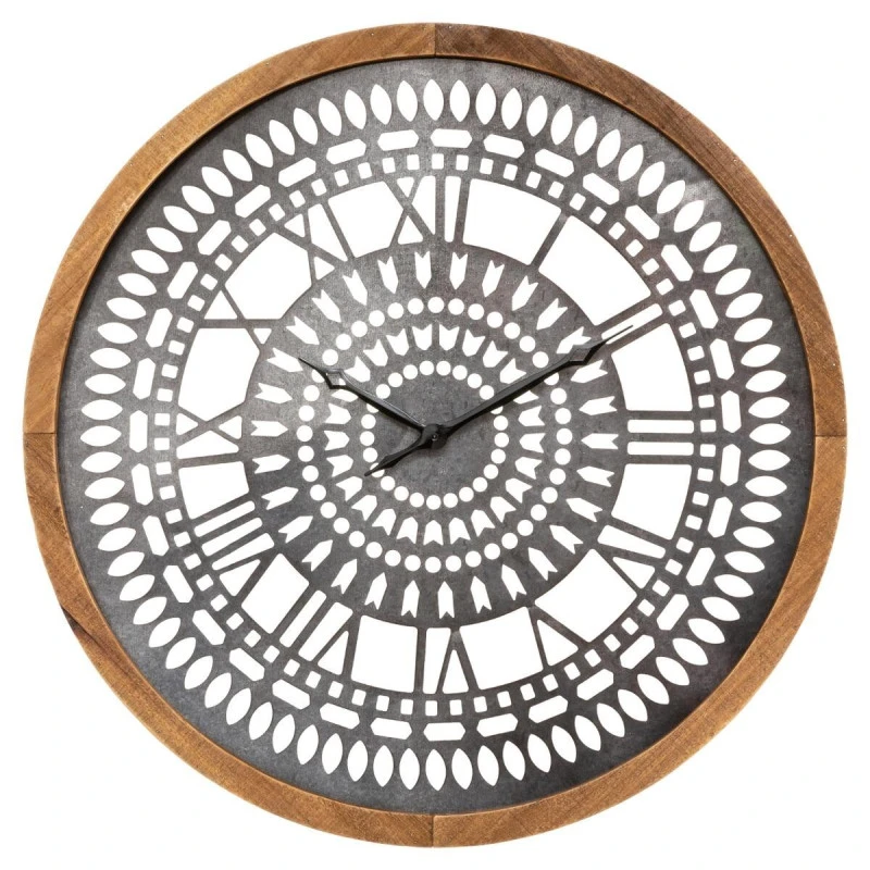 Craquez pour cette horloge en métal ajouré 63 cm avec contour en bois de la marque Atmosphera.