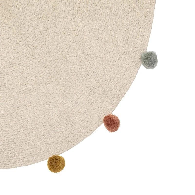 Les petits pompons colorés offrent toute l’originalité et la mignonnerie de ce tapis beige.