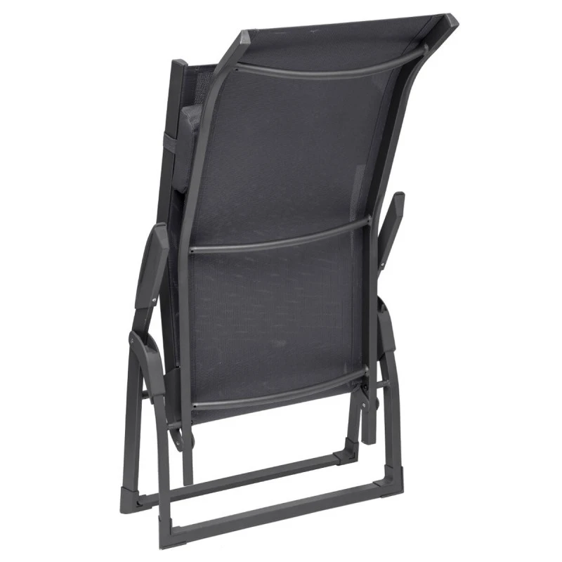 Conçu pour résister, le transat dispose d’une structure en aluminium traité époxy antirouille et d’une assise en texaline (polyester enduit PVC) 570 g/m².
