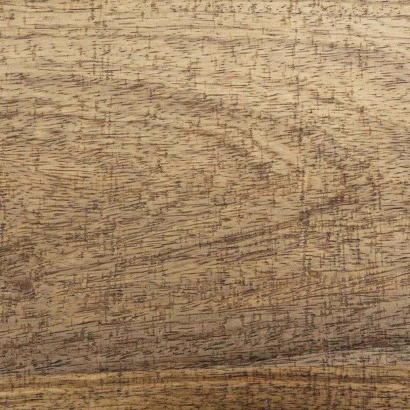 Sa structure est en métal et son plateau en bois de manguier.
