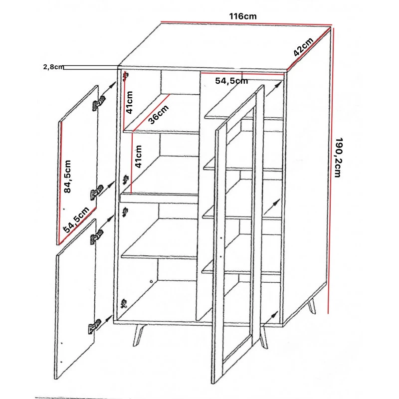 Cette vitrine dispose d’une porte vitrĂ©e avec 4 Ă©tagères intĂ©rieures + 2 portes pleines.Â